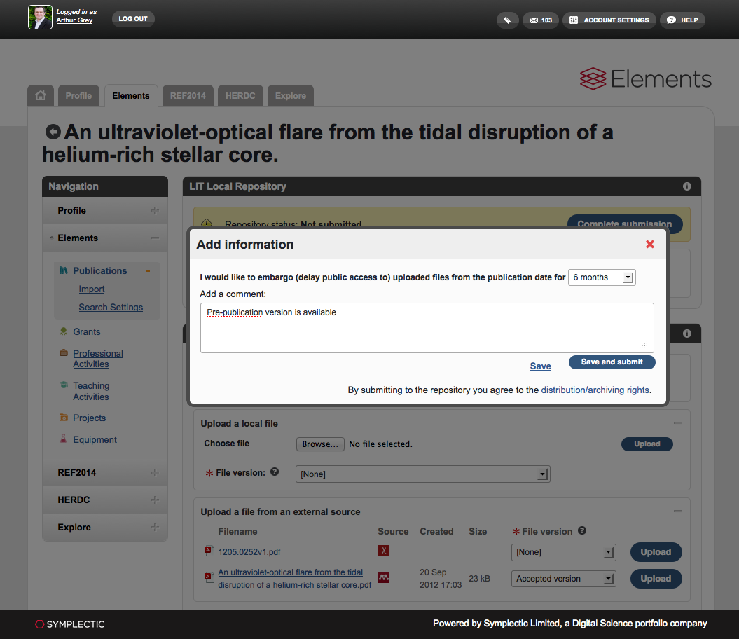 - Extend the intuitive interface of Elements to the institutional repository with out-of-the-box support for all major open repository technologies (DSpace, Fedora and EPrints).